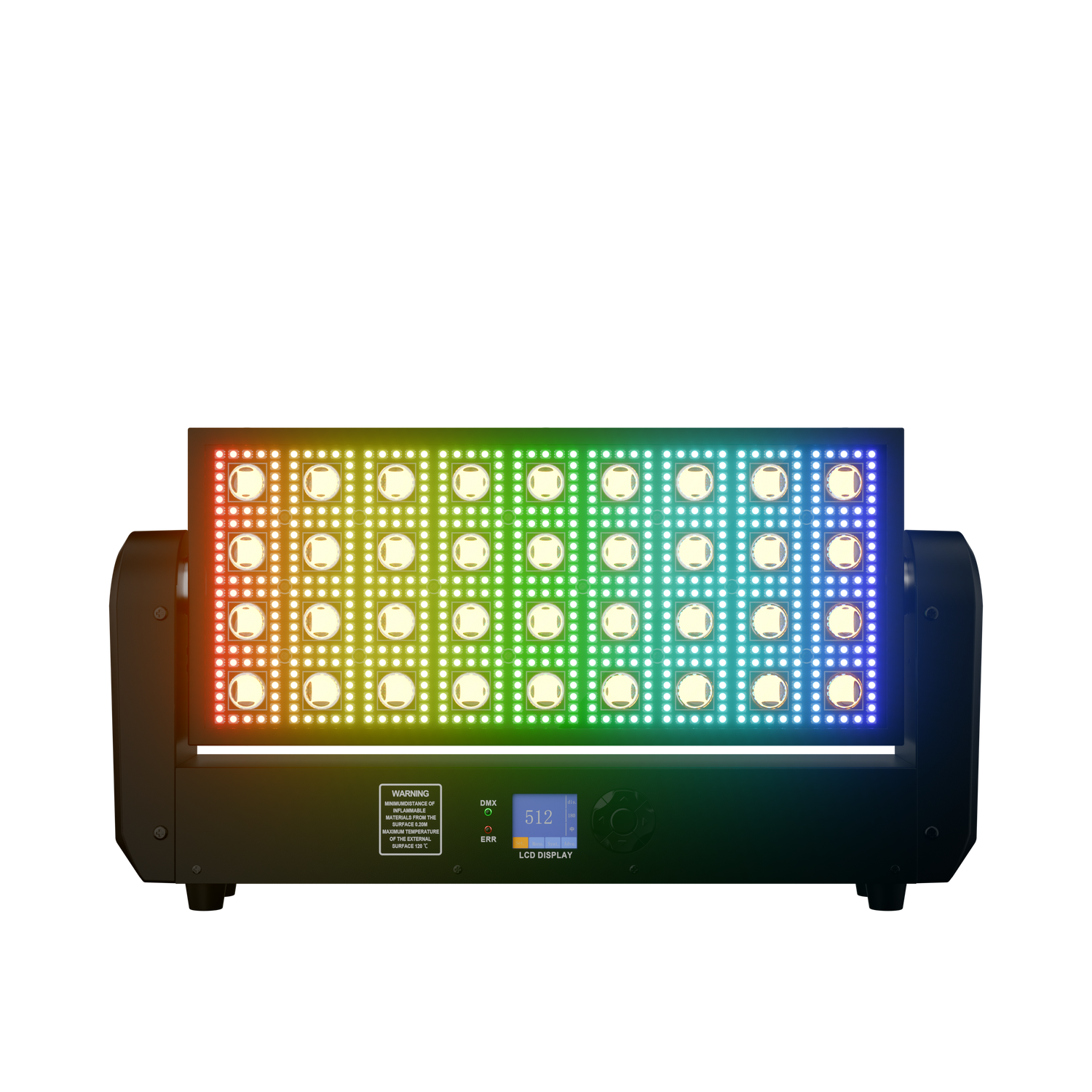 Advanced composite optics ensure seamless color blending. The RGBW system delivers rich, vibrant tones and crisp white beams — consistent and true to life.