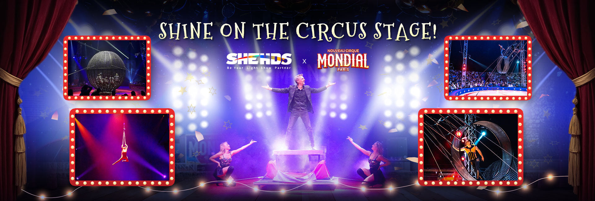 Through this co-branded collaboration, SHEHDS is proud to help elevate the atmosphere under the big top with professional stage lighting solutions—bringing immersive mood, precision, and reliability to every moment of wonder.