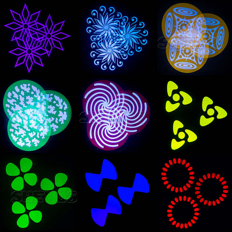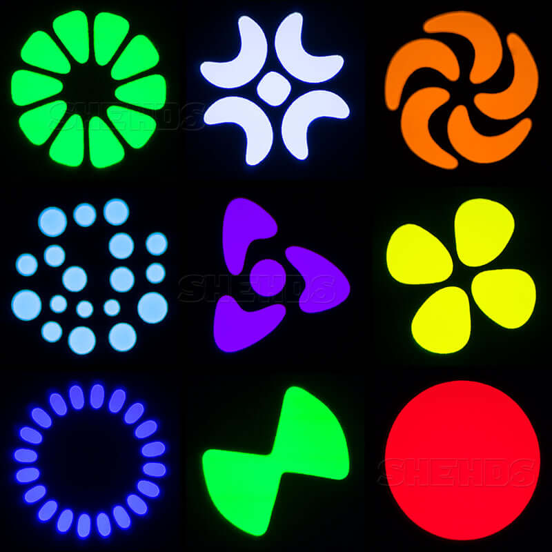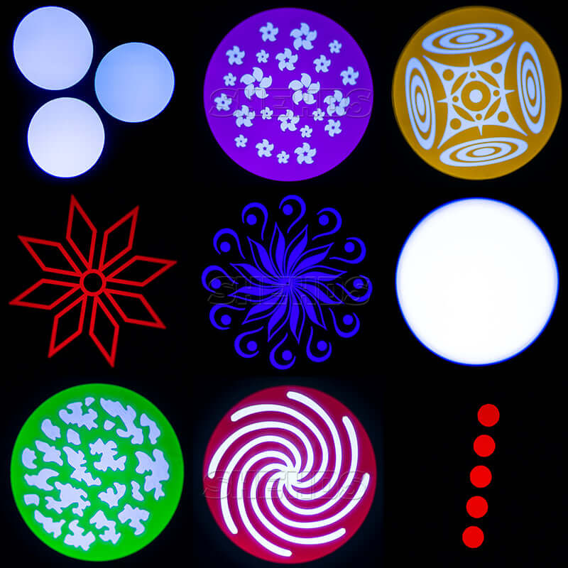 *1 Rotate Gobo Wheel: 6 gobos +white, wheel rotation and shake