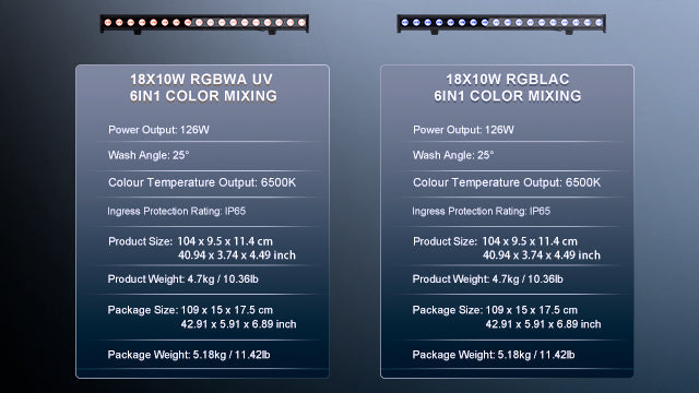 The linearly adjustable color temperature of RGBWA UV / RGBLAC creates the most realistic stage scene environment,