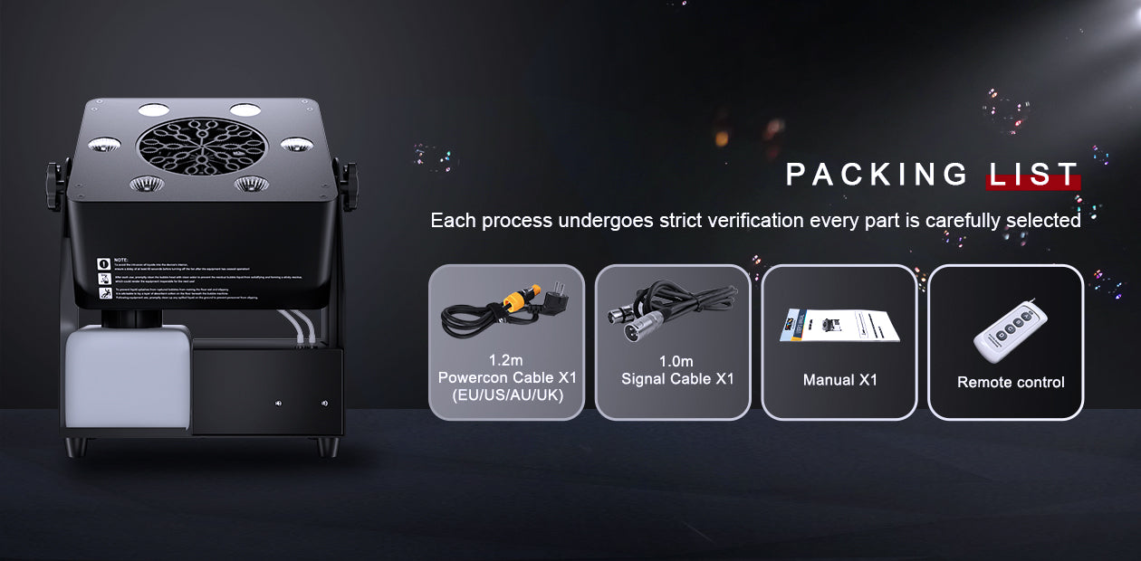 The 90W bubble machine is a revolutionary and professionally durable machine that can project a large amount of bubbles into the atmosphere.