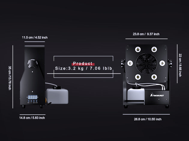 which providing a lot of aerodynamic to push bubbles up to 5-meter throw distance. The spray area is equipped with 6 RGBW LEDs,