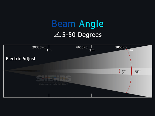 Beam angle can be adjusted electrically