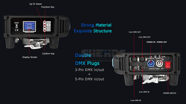 DMX512.Auto Run,Sound Action.Strobe Master/SlaveWith Rich Advanced Built-in Program