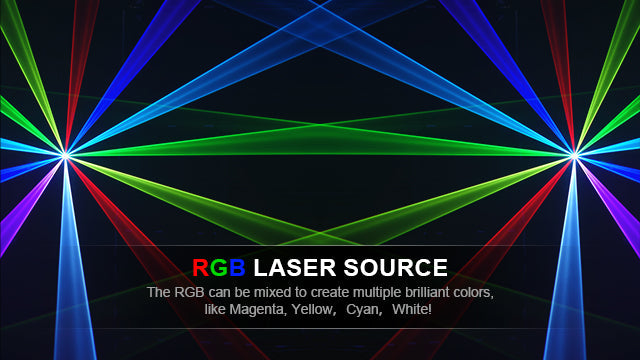 Red, Green, Blue, Yellow, Purple, Cyan, White mixed colors