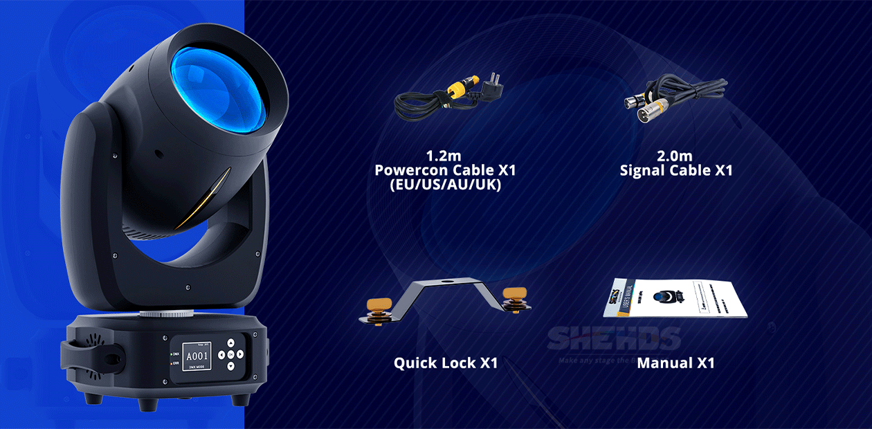 The moving head delivers an impressively sharp and intense beam, cutting through the night sky with remarkable clarity. Even at long distances, the light remains concentrated and vibrant, creating a stunning visual impact. Perfect for outdoor events or stage effects, it offers professional-grade brightness and precision in a compact unit.