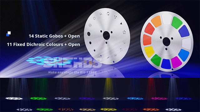 Colors Effect 14 Static Gobos +open / 11 Fixed Dichroic Colours + open