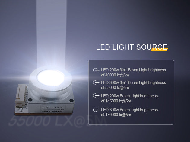 200W:145000 lx / 200W 3IN1:40000lx / 300W:180000 lx / 300W 3IN1:55000lx