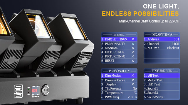 DMX512, Auto-run, Master-Slave, Sound Control, with RDM function