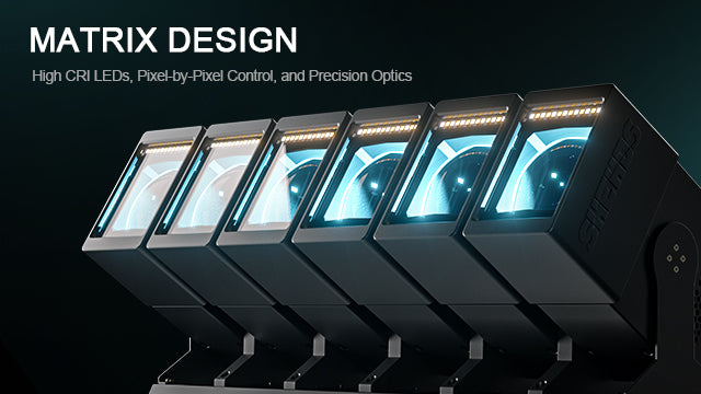 Advanced composite optics ensure seamless color blending. The RGBW system delivers rich, vibrant tones and crisp white beams — consistent and true to life.