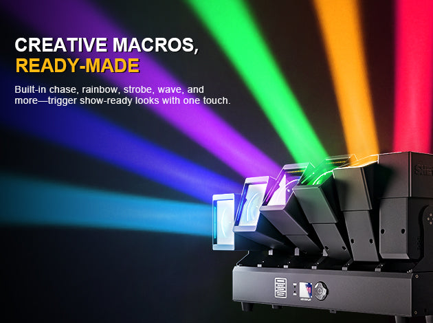 Built-in chase, rainbow, strobe, wave, and more, trigger show-ready looks with one touch.
