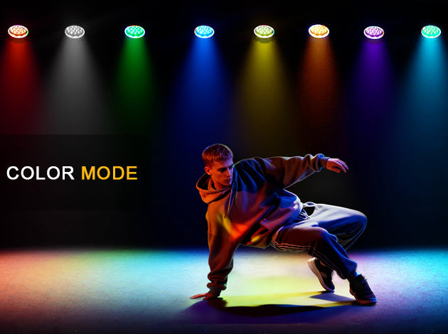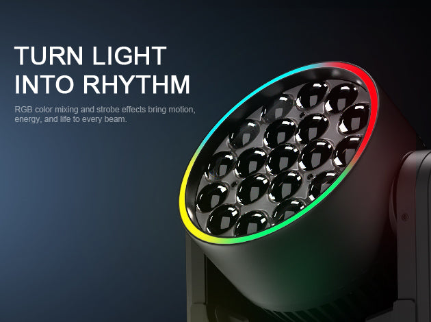 RGB color mixing and strobe effects bring motion, energy, and life to every beam.