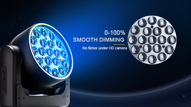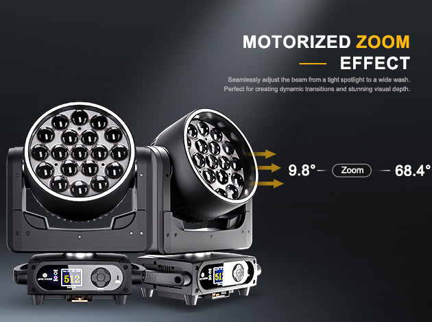 Seamlessly adjust the beam from a tight spotlight to a wide wash. Perfect for creating dynamic transitions and stunning visual depth.
