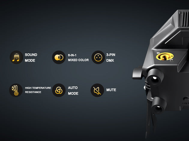 The combination of powerful strobe effect and 3 built-in automatic mode lighting effects, 11 voice control modes, Not only does it enrich the visual effects of the performance, but it also provides more creative space for the performance team..