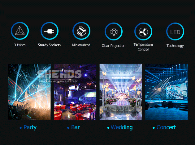 High Brightness,Clear Projection / Sturdy Sockets / 3-Prism