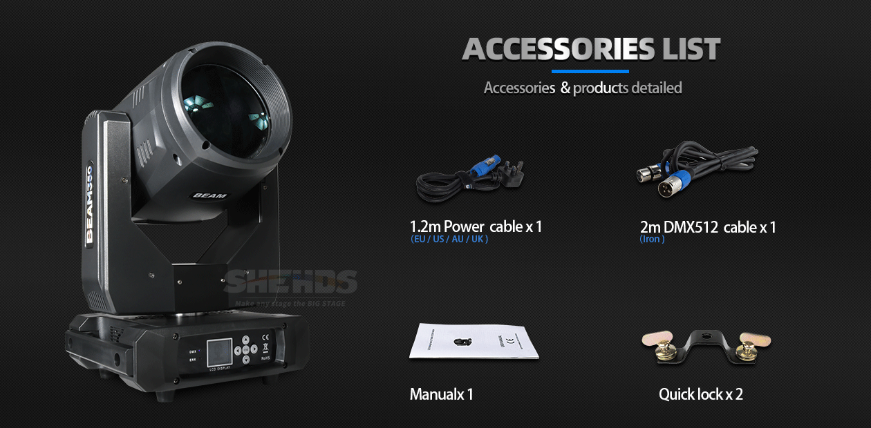 The Bulb Beam 350W 17R is a great light at the right price. I looked at several others brands and was glad I chose the Shehds. It works well, has a lot of different functions that look terrific, is powerful and easy to use. I highly recommend the 350W 17R!
