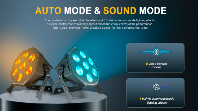 The combination of powerful strobe effect and 3 built-in automatic mode lighting effects, 11 voice control modes, Not only does it enrich the visual effects of the performance, but it also provides more creative space for the performance team..