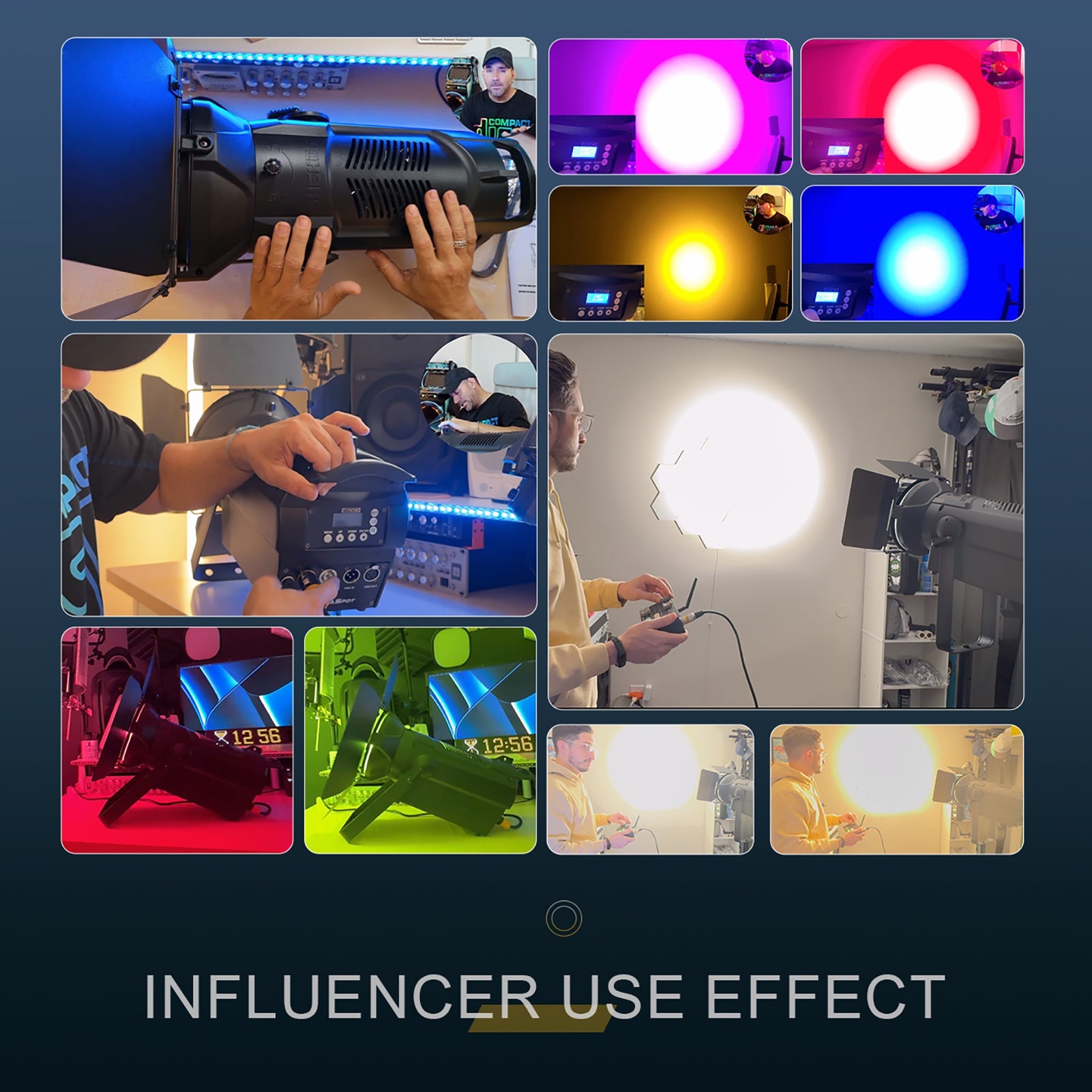 SHEHDS 250W/350W LED Fresnel Spotlight RGBWAUV/RGBLAC/RGBW/RGBL/Warm+Cool White Stage Lighting with Barndoors & Pulse Strobe