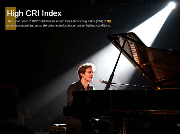 The Spot Zoom250W/350W boasts a high Color Rendering Index (CRI) of 96,