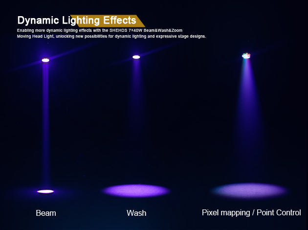 Enabling more dynamic lighting effects with the SHEHDS 7×40W Beam-Eye Moving Head, making stage lighting design more creative and expressive.