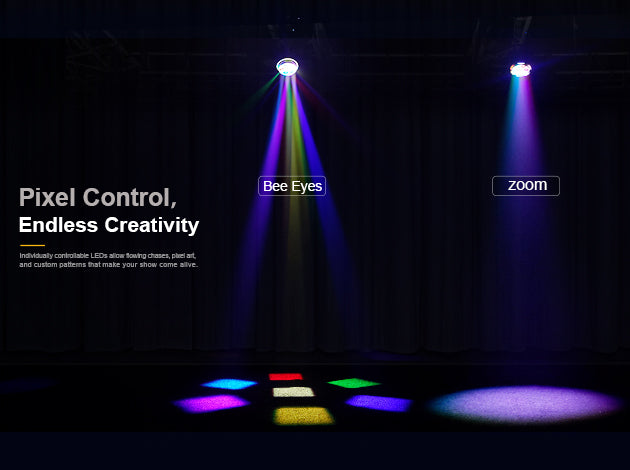 Individually controllable LEDs allow flowing chases, pixel art, and custom patterns that make your show come alive.