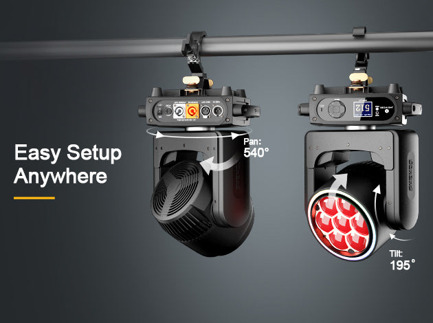 Can be hung or floor-mounted with ease, offering 540° pan and 195° tilt movement for flexible, creative stage setups.