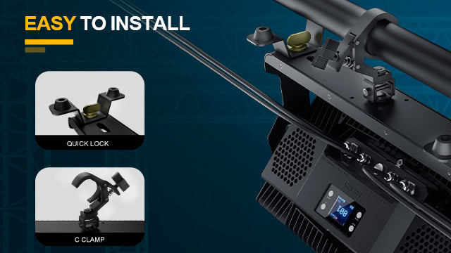 The wash stage light bar comes with a 180° rotatable stand, allowing flexible positioning to suit different lighting angles. The stand is compatible with C-clamps, making it easy to securely mount the fixture on trusses for quick and hassle-free installation.