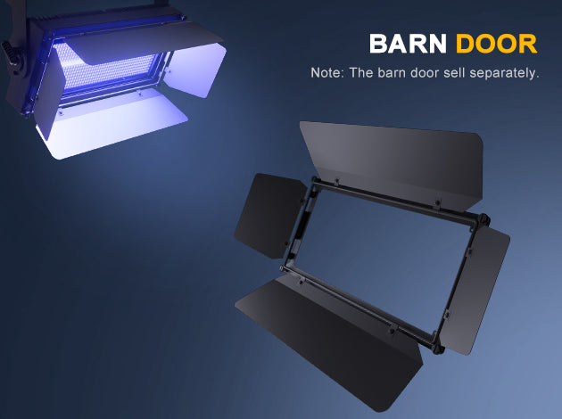The stage light barn door is adjustable metal flaps that precisely control the spread and direction of light, preventing unwanted spill.